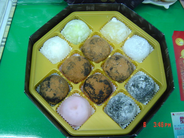 內餡吃起來的感覺很像是結婚在吃的那種傳統喜餅的口感,外層的麻糬吃起來和前面三顆都不同,很像湯圓,所以這是一顆「冰」的鹹湯圓