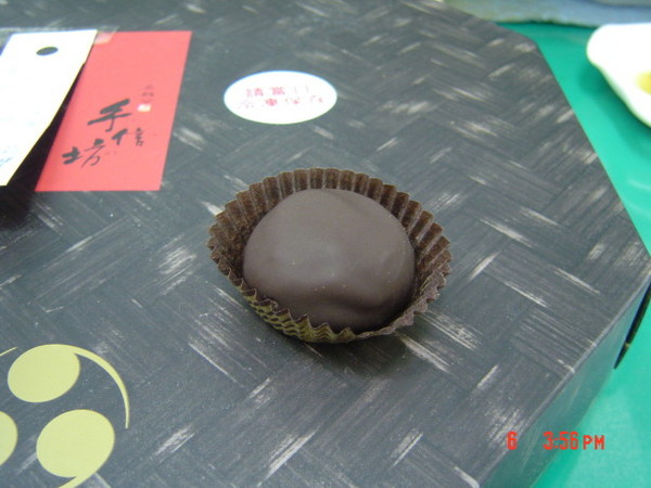 我吃的第二顆是「黑糖花生」,外層的麻糬有桂圓的味道,外層略硬,裡面的花生也很硬。![]()